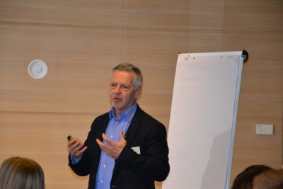 Károlyi László az etikus üzleti vezetés témakörében tartotta meg előadását. Beszélt a tipikus üzleti etikai kérdésekről és a vezetői felelősségről, valamint a kreatív benchmarkingról, azaz a CrenchmarkingTM-ról, mely a vezérigazgató úr saját metodológiája. Ez az új szervezetfejlesztési modell fontos szerephez jut a változó világban, amikor gyorsan kell jó döntést hozni a vezetőknek ahhoz, hogy továbbra is sikeresen vezessék cégüket.