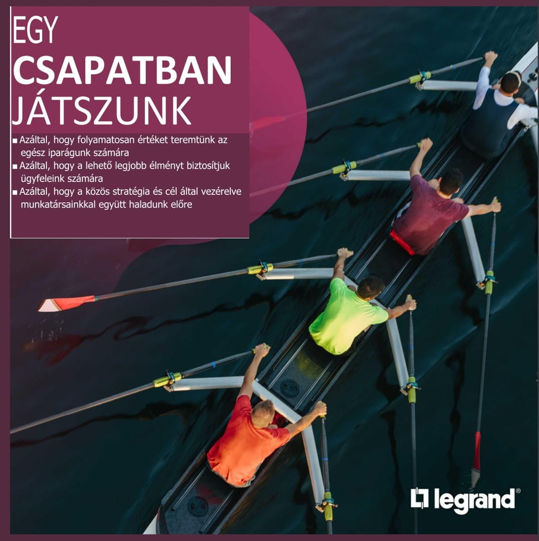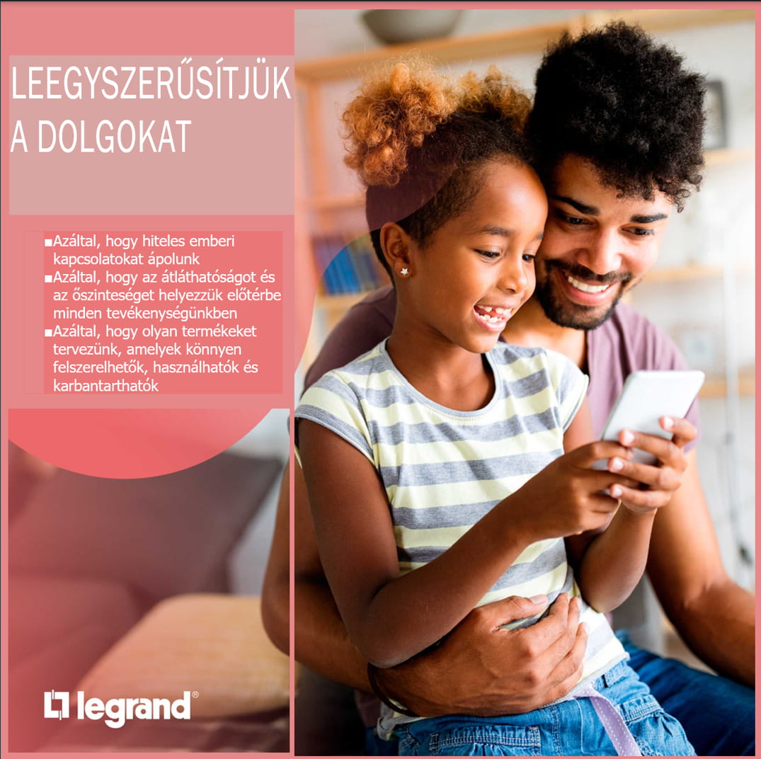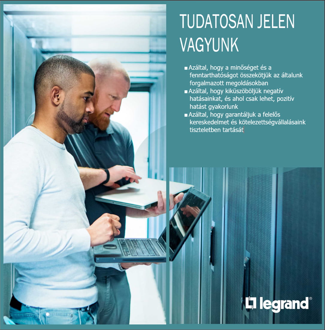 Létjogosultságunk, hogy jobbá tegyük mások életét. A név kötelez: ennek érdekében kiállunk a minőség és a több mint 150 éve forgalmazott megoldásaink mellett. Ha a Legrandot választja, akkor egy felelős üzleti partnert választ, aki elkötelezett az épületek kényelme, jóléte és biztonsága iránt. A környezeti és társadalmi kihívásokra úgy reagálunk, hogy betartjuk az üzleti tevékenységünk negatív hatásainak csökkentésére tett vállalásainkat. Mivel megbízhatóak vagyunk, mindig számíthat ránk.