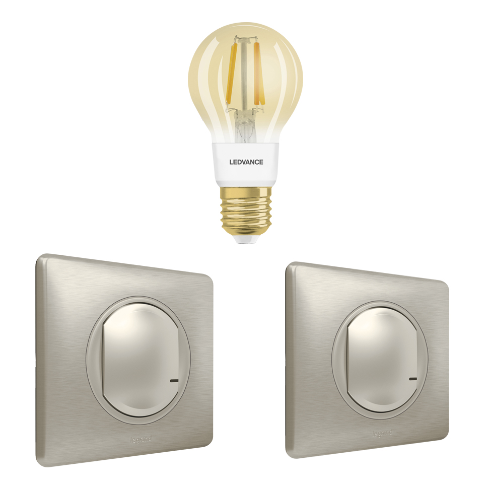 Szerelje be egy lámpatestbe és társítsa a vezeték nélküli kapcsolóhoz az okostelefon Home + Control alkalmazásán keresztül. Ez a csomag tovább bővíthető Valena Life with Netatmo kiegészítő csomaggal.