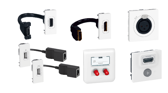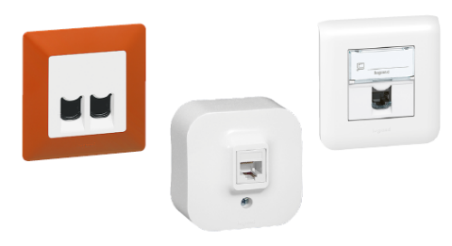 Villamossági rendszerek világszintű gyártójaként a Legrand számos szerelvény családdal rendelkezik, amelyek mindegyike tartalmaz adatátviteli csatlakozót. A hagyományos telefon (RJ11) és Etherent (RJ45) változatok mellett speciális aljzatok is elérhetők, amelyek zöme falba süllyesztve sorolható az aktuális termékcsalád egy funkcióival, falon kívül elhelyezhető illetve energiaoszlopba, parapet csatornába, asztali elosztósorba és padlódobozba is szerelhető.