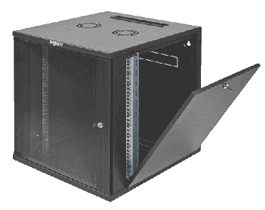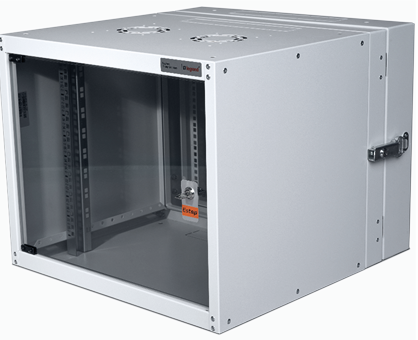 Megfordítható biztonsági üvegajtóval szerelt, antracit színű fali rack szerkények széles választéka 6RU és 21RU között. 19” változatokból létezik szegecselt, fix oldallapos, valamint kulccsal rögzített levehető oldallapos kialakítás. Az egyrészes változatok két mélységben érhetőek el: 450 és 600 mm, míg a kinyitható hátsó résszel szerelt, kétrészes kialakítások mélysége 610 mm. A teljes szortiment tartalmaz kefés kábelbevezetőt. Két darab, mélységben állítható 19” profilsínnel szerelve, amelyek további profilsínekkel kiegészíthetők a négypontos rögzítés érdekében. Az optimális levegőáramlás miatt a tetőszerkezet előre perforált, amely kiegészíthető termosztáttal szerelt 2 ventilátoros panellel, amely nem csökkenti a szerkény rack kapacitását. A kétrészes változatok felszerelhetők kerékkészlettel, így álló rackként is használhatók.